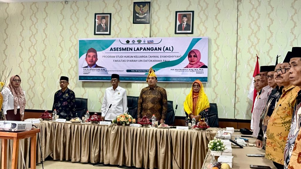 Palu (UIN Datokarama ) – Badan Akreditasi Nasional Perguruan Tinggi (BAN-PT) mengutus dua asesor untuk melakukan asesmen lapangan (AL) terhadap Program Studi (Prodi) Hukum Keluarga jenjang Strata Satu Fakultas Syariah Universitas Islam Negeri (UIN) Datokarama Palu, Jumat (26/9/2025).