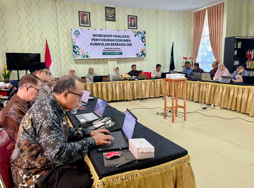 Fakultas Syariah Universitas Islam Negeri (UIN) Datokarama Palu menyelenggarakan Workshop Finalisasi Penyusunan Dokumen Kurikulum berbasis Outcome Based Education (OBE) sebagai upaya penguatan mutu pembelajaran berbasis capaian. Kegiatan ini berlangsung selama dua hari kerja, Kamis–Jumat, 29–30 Januari 2026, bertempat di Ruang Visitasi Lantai 2 Fakultas Syariah.